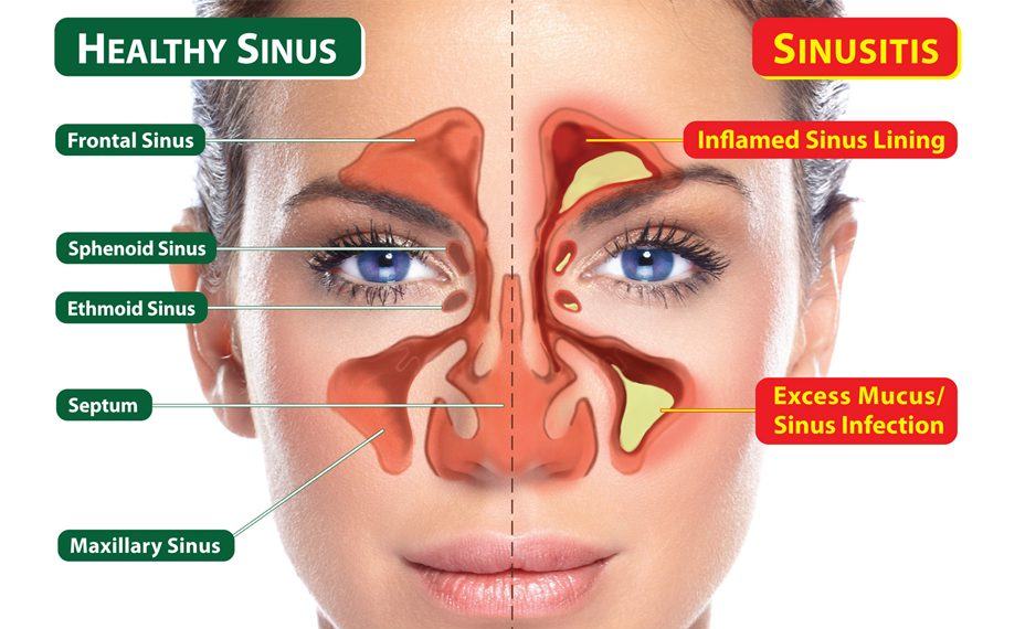 A sinus infection (sinusitis) occurs when the sinuses become inflamed due to bacteria, viruses, or allergies, causing blockage and mucus buildup. It can lead to symptoms like facial pain, nasal congestion, headache, and thick nasal discharge.